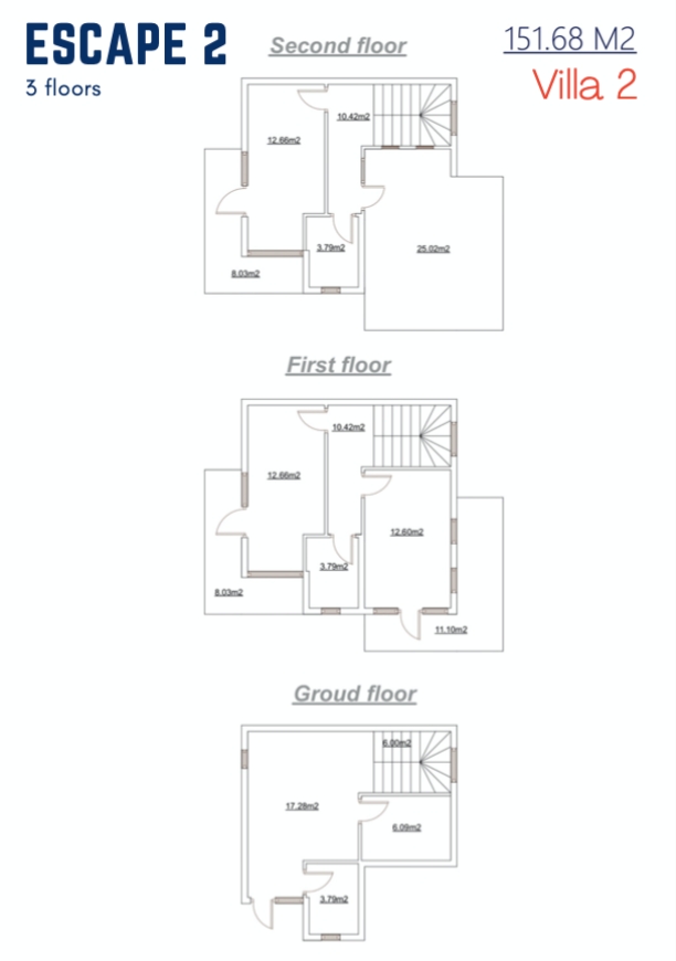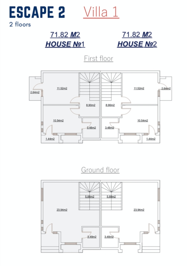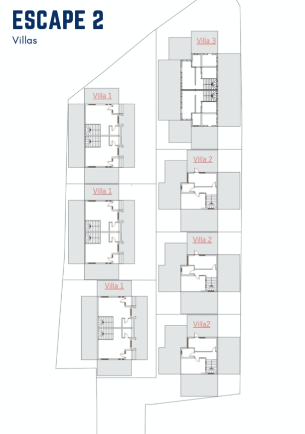Escape 2 Escape 2, is a villa complex.Located near the center of Batumi, Georgia. Escape 2 consists of:– 2 floor villas.– 3 floor villas.– 11 parking spaces. – Pool.Escape 2 is located around 10 mins from the center of Batumi.Areas ranging from 70-150m2. Appartments Maps